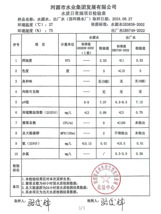 2024年8月27日水質(zhì)檢驗(yàn)報(bào)告