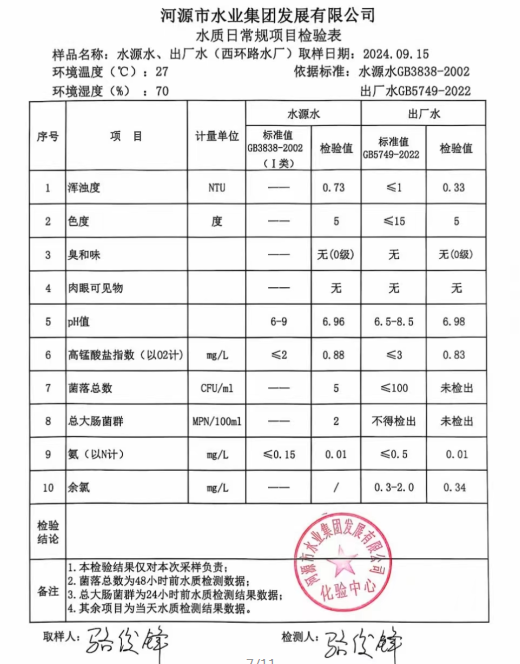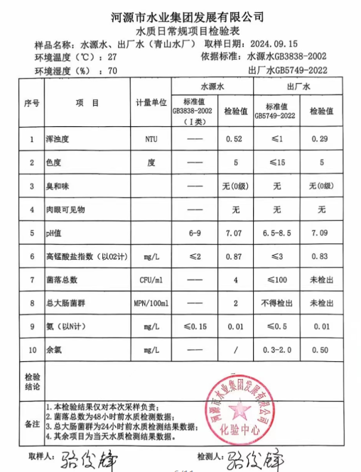 2024年9月15日水質檢驗報告