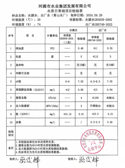 2024年9月29日水質(zhì)檢驗(yàn)報(bào)告
