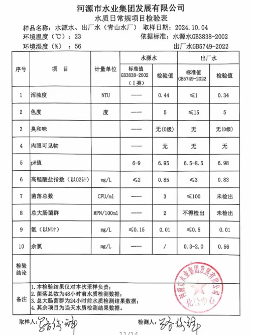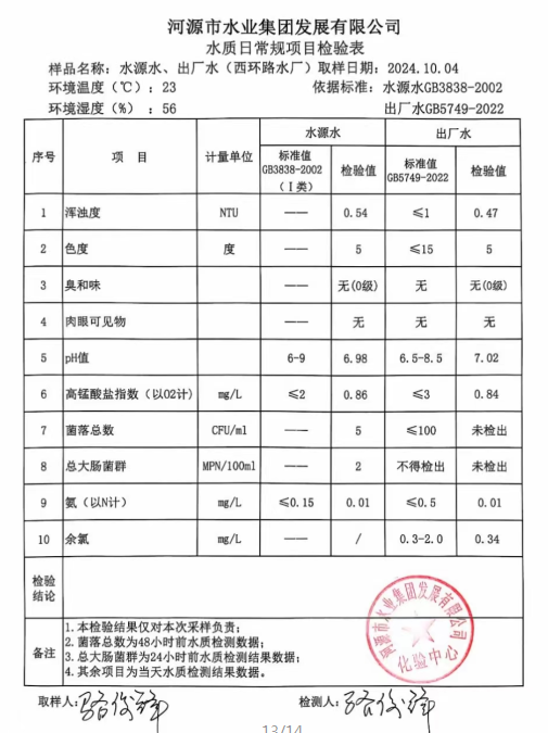 2024年10月4日水質(zhì)檢驗(yàn)報(bào)告