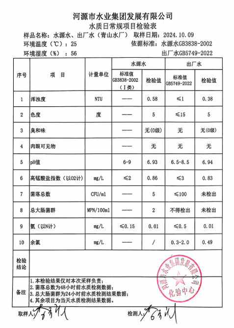 2024年10月9日水質(zhì)檢驗報告